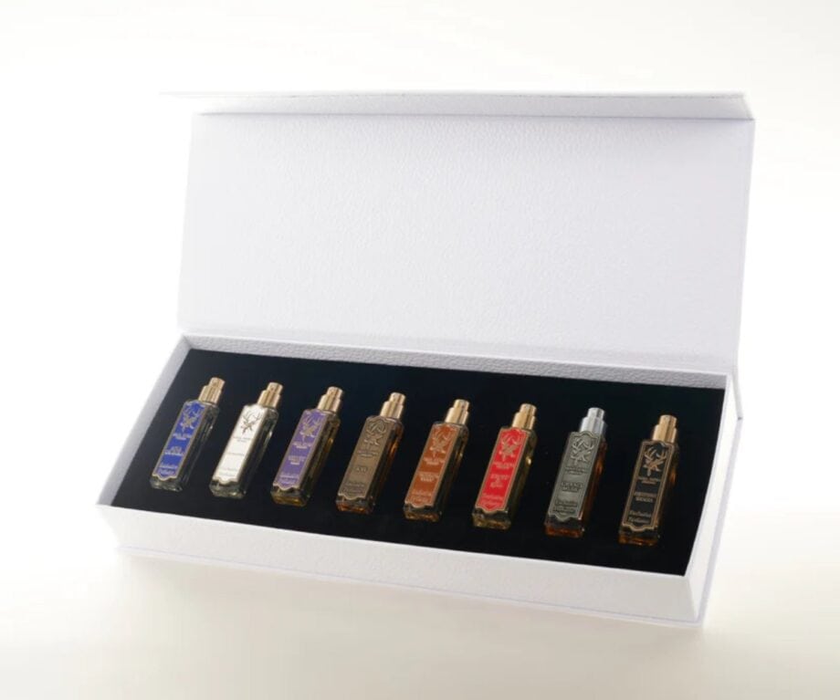 A set of eight signature scents from Pana Dora Sweden to take on your next journey (or to remind you of past trips). From the crisp hush of Swedish Wood to the opulent whisper of Velvet Iris, these 15ml atomisers are bottled and ready to spritz wherever your travels happen to take you. Presented in a beautiful box that doubles as both a keepsake and a carry-on companion, every scent from the collection offers a different mood. And just like your travels, your perfume should never be forgettable.