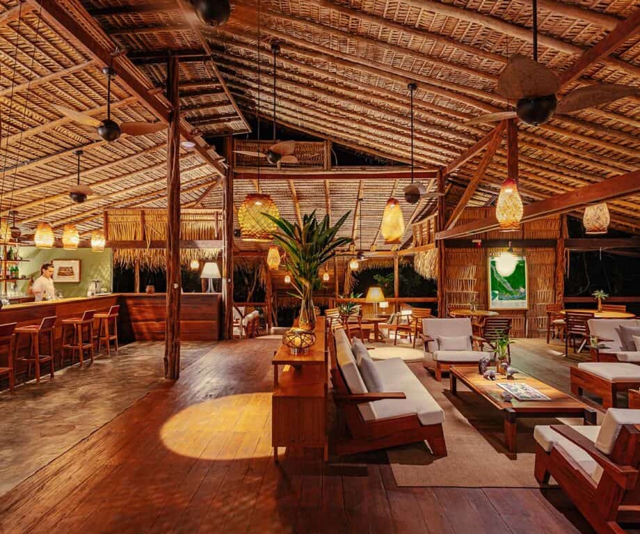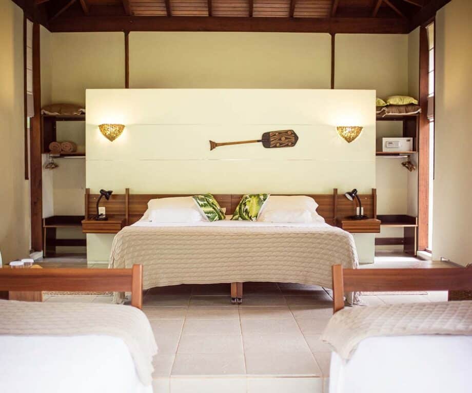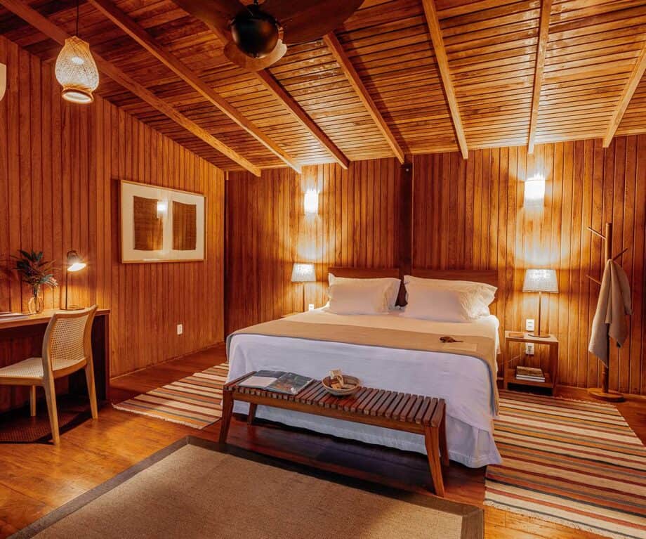 The accommodation here is certainly luxurious. The lodge’s design is based on the local traditional caboclo architecture to ensure that it blends harmoniously in with its surroundings. Rooms are spread amongst the greenery and guests can choose from cottages, bungalows or panoramic rooms and even a complete luxury villa for larger groups. The main lodge welcomes guests into an open-air lounge with a thatched roof with rattan shades and polished, local wood.