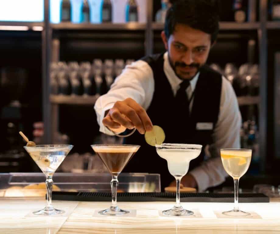 You still get that fully lie-flat bed, but the suites have much wider seats and more personal space to spread out – there’s even more storage. Privacy is also improved, with most aircraft having fully enclosed suites and fewer seats throughout the cabin. When it comes to meal times, First Class offers an elevated wine and champagne selection – but that’s about it.