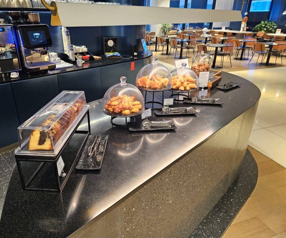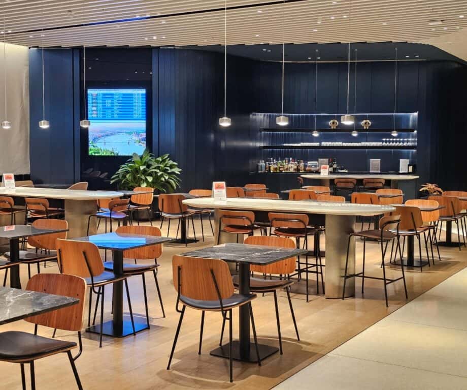 And at 5:00 am, only a dozen or so people shared the space, making it feel less like an airport lounge and more like a beautifully appointed private club we’d accidentally stumbled into.