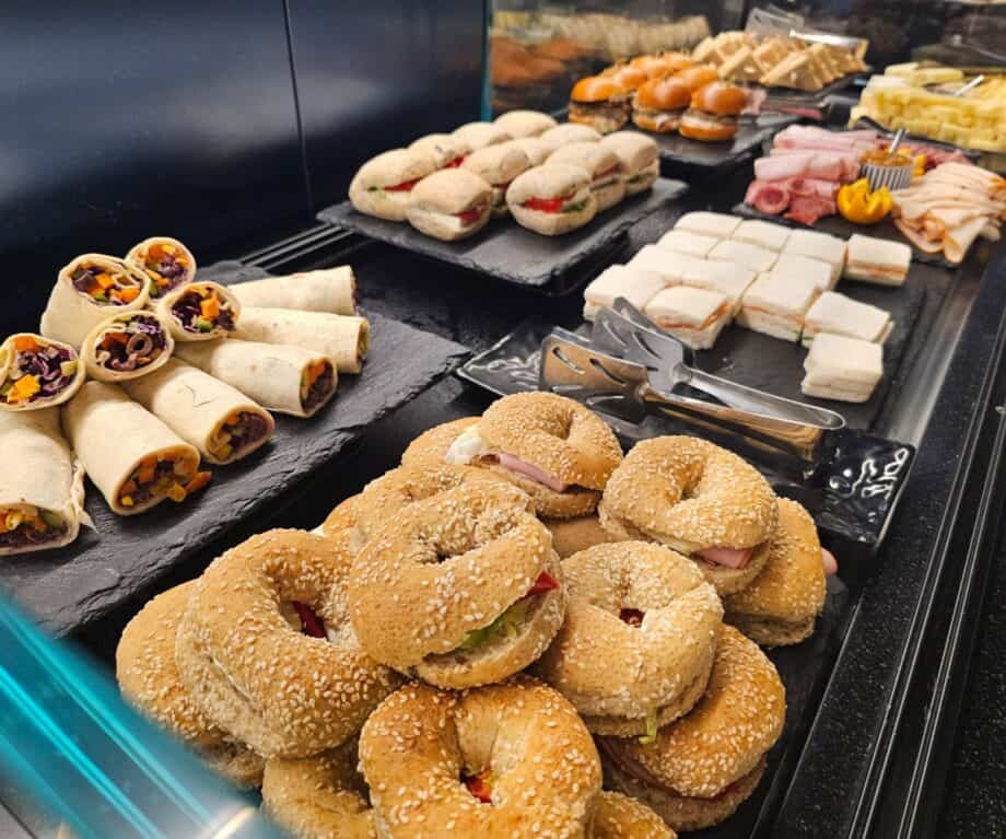 Drinks stations are well distributed: water, juices, teas and coffee machines are found in distinct areas, minimising queues.