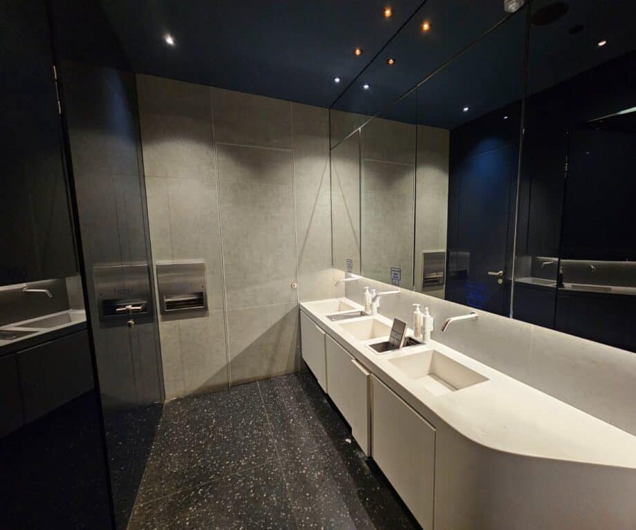 The restrooms are discreetly located and spotless during our visit, complete with Korres toiletries, an Athenian brand deeply rooted in its Greek heritage.