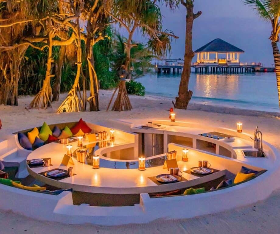 One culinary experience I haven’t talked about yet is the newest addition Riha. Imagine a sunken dining and kitchen area on the beach where you go on a culinary 8-course journey through India. Thanks to the centuries of trading between the Maldives and India, this experience is one not to be missed. I would suggest making reservations on time cause seating is very limited.