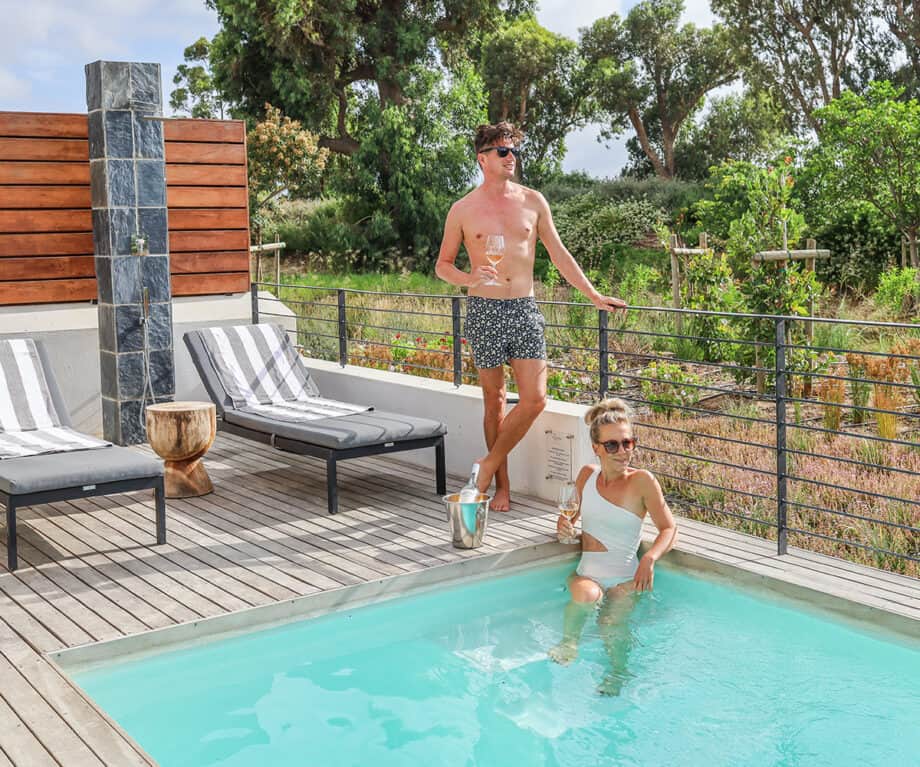 Lastly, the stunning owner’s villa is available for selective stays – a modern and custom-designed home featuring six en-suite bedrooms. There are four Vineyard suites in the courtyard, each with its own heated pool, which can also be rented out for small groups of friends or family seeking seclusion. There’s also an impressive presidential quite – a favourites for wedding couples!
