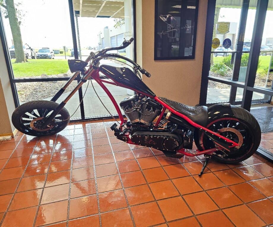 Background checks for our special, private tour are conducted at reception where a custom-made Learjet Chopper motorbike, first unveiled at a motor speedway event some 20 years ago, is the talking point for any new visitor.