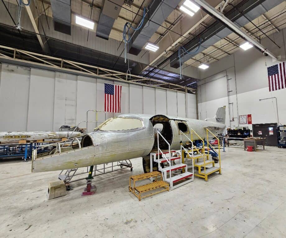 Our visit finished on a nostalgic high note and in an area where we could once again take photographs. The Classic Lear Jet Foundation’s restoration of the very first customer-delivered Learjet (serial 23-003) is being overseen on the campus, in Building 14—the former Learjet delivery facility.